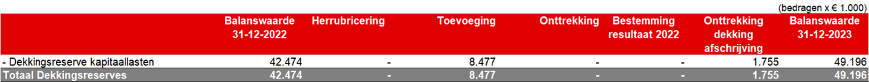 - Dekkingsreserve kapitaallasten | 42.474 | - | 8.477 | - | - | 1.755 | 49.196 |