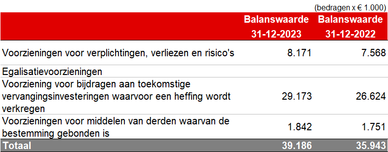 Voorziening voor bijdragen aan toekomstige vervangingsinvesteringen waarvoor een heffing wordt verkregen | 29.173 | 26.624 | ||