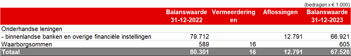 Balanswaarde 31-12-2022 | Vermeerderingen | Aflossingen | Balanswaarde 31-12-2023 | |